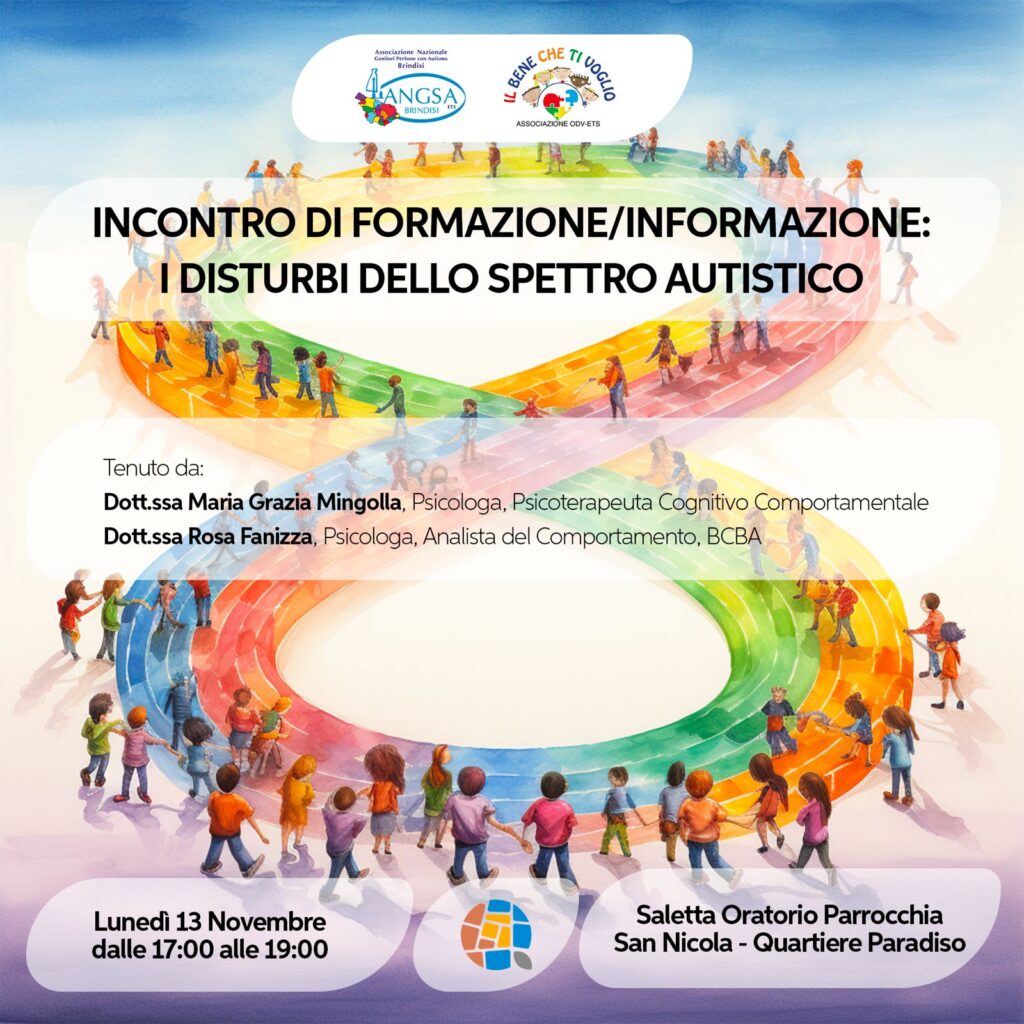 In prossimità dell’inaugurazione della Casa di Quartiere del quartiere Paradiso, le Associazioni ANGSA Brindisi e Il bene che ti voglio – futuri enti gestori dello spazio – il 29 settembre 2023 si sono alla comunità del quartiere con un evento di coinvolgimento, sensibilizzazione e racconto sul tema “Autismo”. Scopo dell’iniziativa è stato quello rivolgersi sia alle famiglie già facenti parte delle organizzazioni, quanto alla comunità tutta, nell’ottica di accrescerne la consapevolezza e aprire una linea di dialogo su un topic di strettissima attualità e grande importanza.
